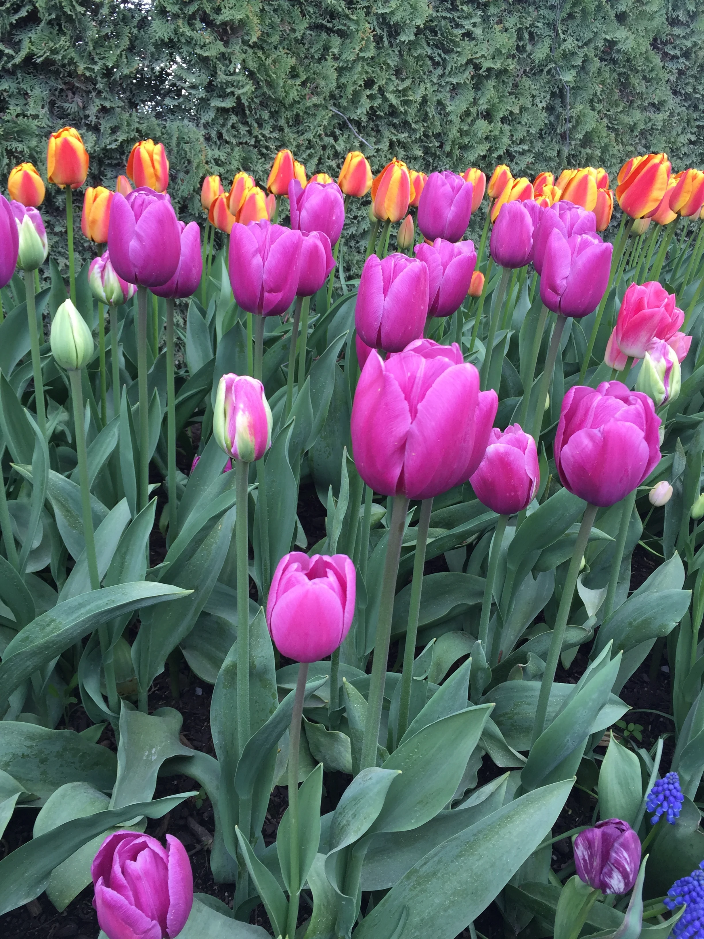 Usually the daffodils are finished by the time the tulips arrive, but our cold wet spring weather must have kept them around a little longer.