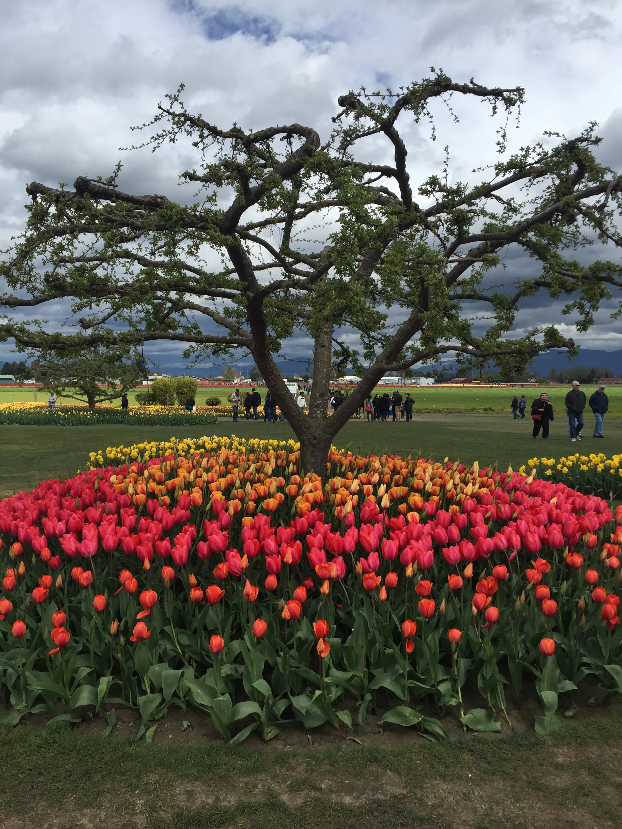 Venturing out to the tulip fields in Skagit County, two friends and I took a chance that we could catch this annual show of beauty before the predicted rains came. Being a Monday, the morning crowd was fairly slight...a good day to go.